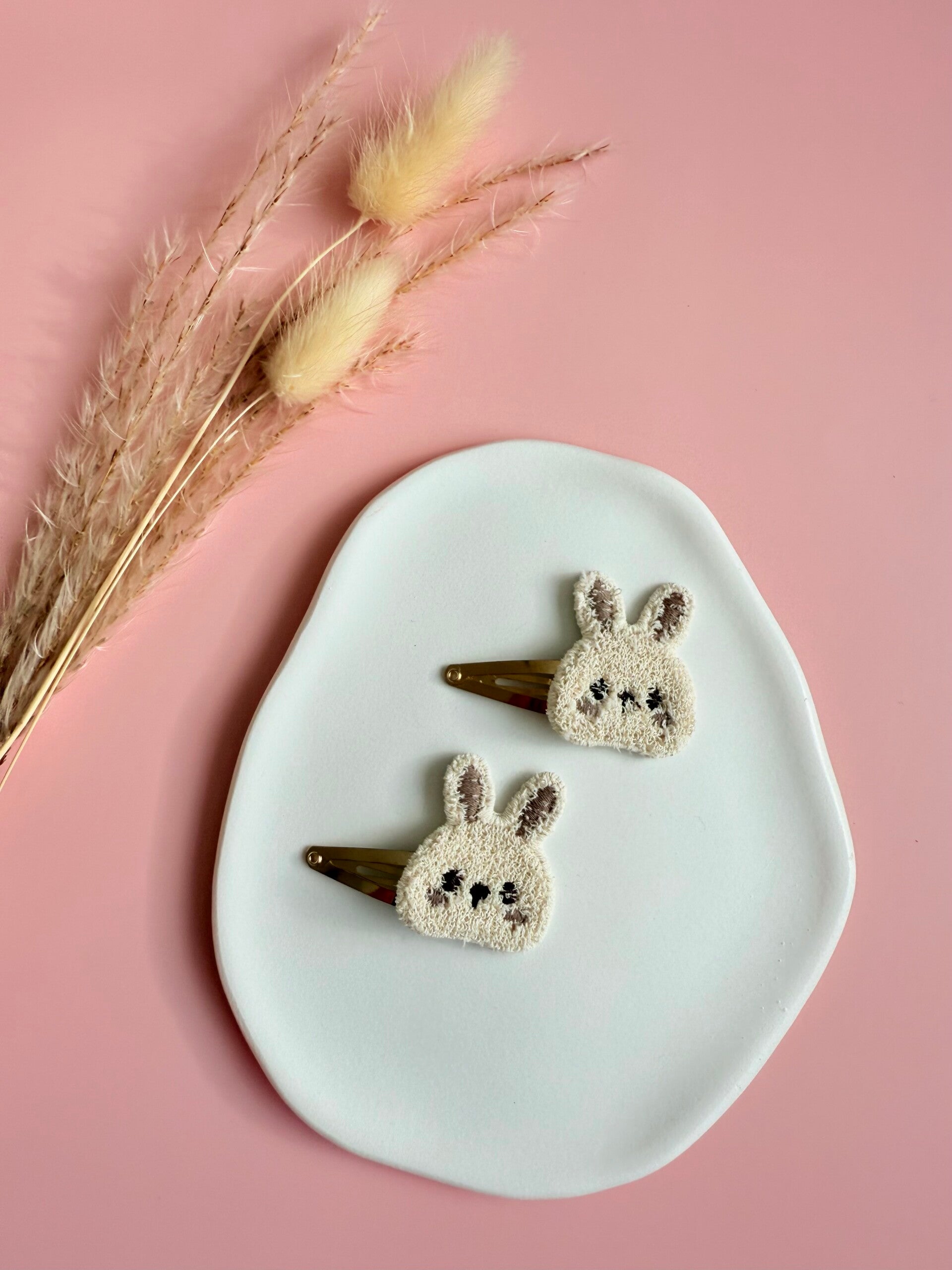 Fluffy & cute zachte konijntjes die je gewoon wilt hebben! De applicatie is bevestigd op een stevig haarspeldje van 5 cm.